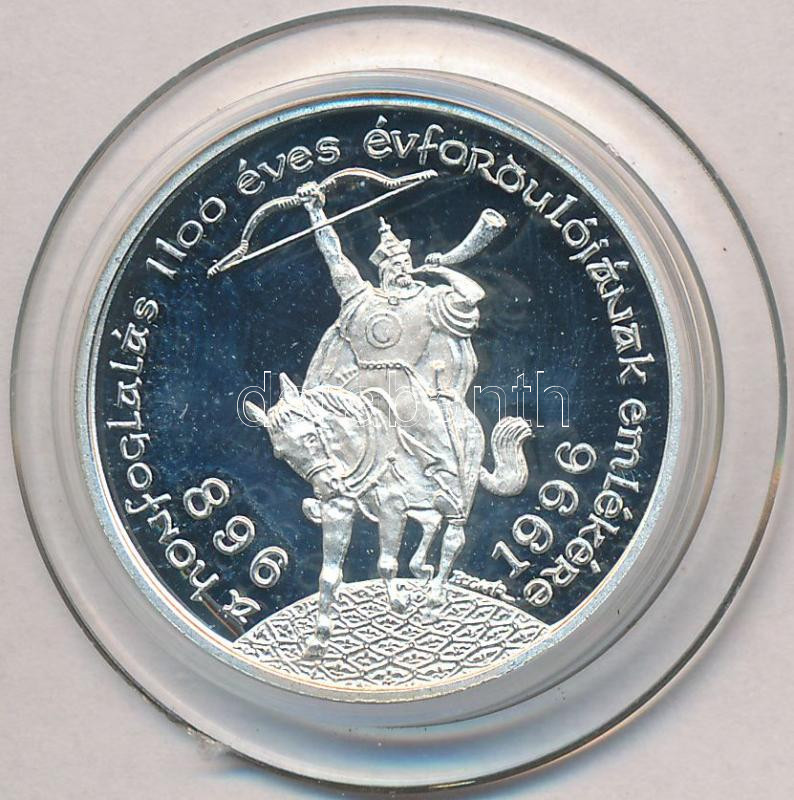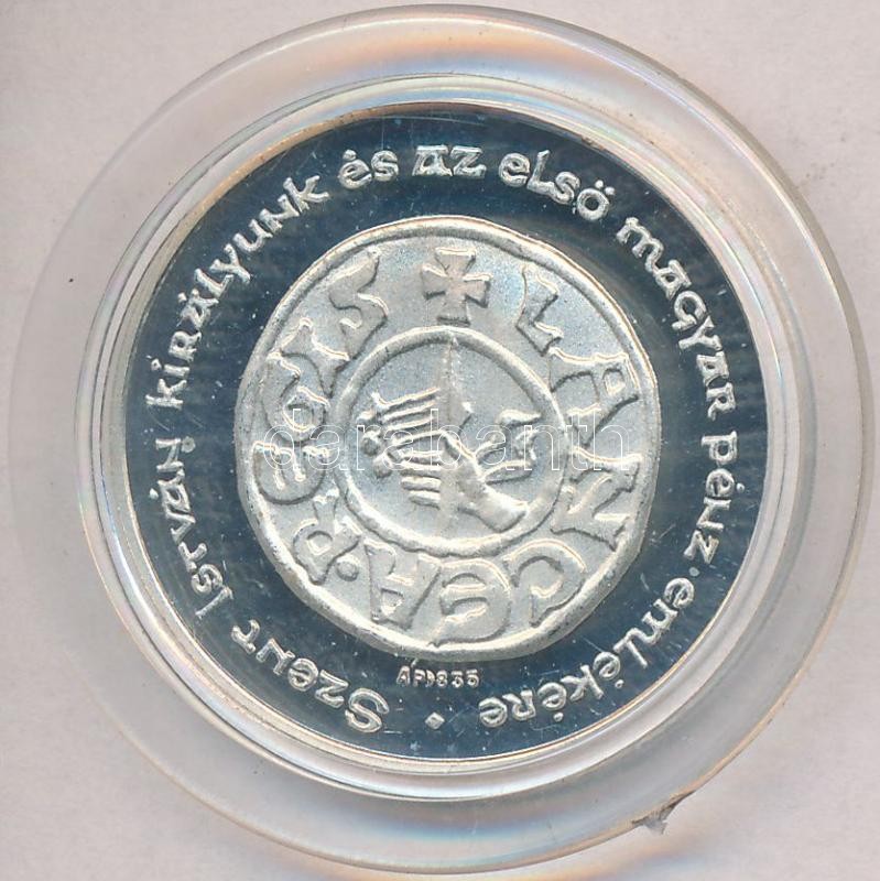 Description: Bognár György (1944-) 1996. "A honfoglalás 1100 éves évfordulójának emlékére / Szent István királyunk és az első magyar pénz emlékére" Ag emlékérem (5,37g/0.835/27mm) T:PP