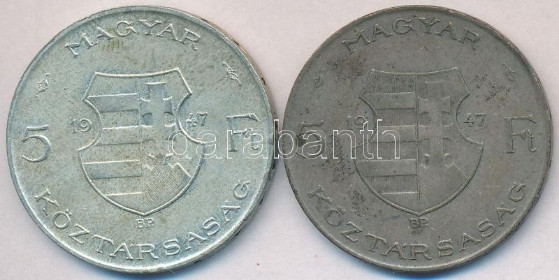 1947. 5Ft Ag "Kossuth" (2x) T:2-,3