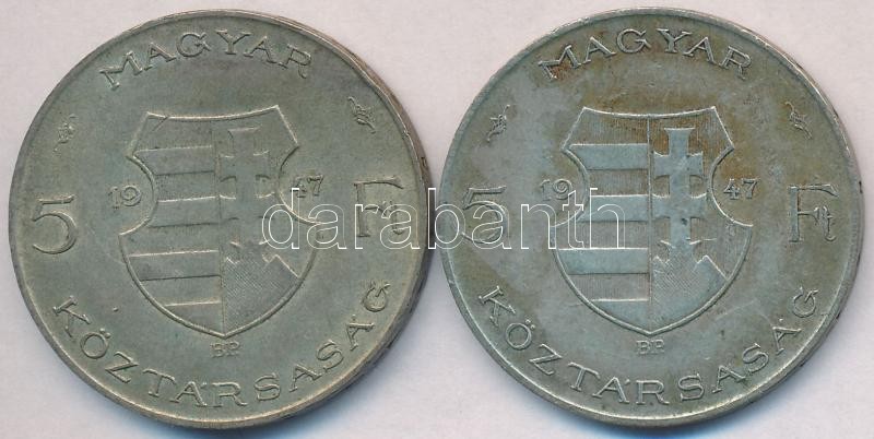 1947. 5Ft Ag "Kossuth" (2x) T:2-,3