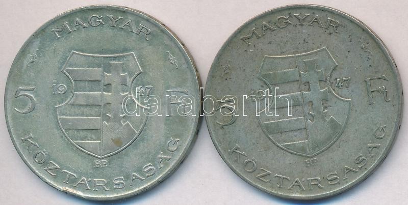 1947. 5Ft Ag "Kossuth" (2x) T:2-,3