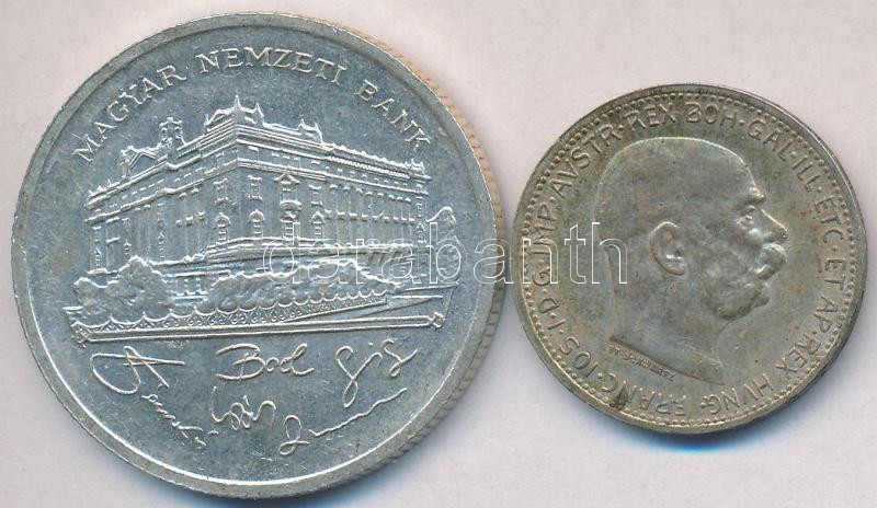 Vegyes: Ausztria 1915. 1K Ag "Ferenc József" + 1992. 200Ft Ag "MNB" T:2 patina