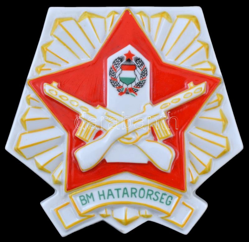~1970. "BM Határőrség" jelzett hollóházi porcelán plakett sé...