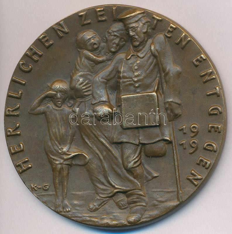 Németország / Weimari Köztársaság 1919. "Vezetlek titeket- 1914 / -dicső korszakba 1919" Br háborúellenes emlékérem. Szign.: Karl Goetz (58mm) T:2