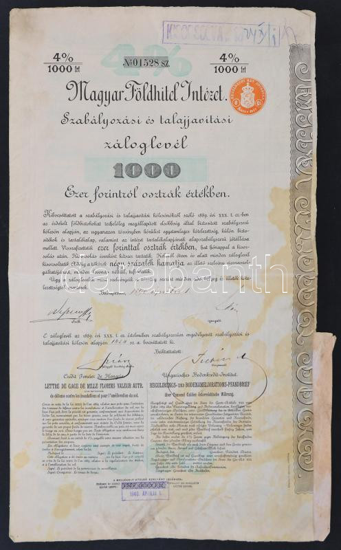 https://www.darabanth.com/en/253-Online-auction/253.0/Numismatics/Shares-and-Tickets~200005/Budapest-1890-Magyar-Foldhitel-Intezet-Szabalyozasi-es-talajjavitasi-zaloglevel-1000Ft-r~II1224511
