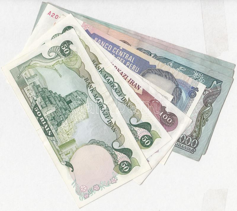 30db-os vegyes külföldi bankjegy tétel, főleg afgán, néhány iráni, perui és egyiptomi bankjegy T:II,II-,III 30pcs of banknotes, more Afghan and some Iranian, Egyptian and Peruvian banknotes C:XF,VF,F