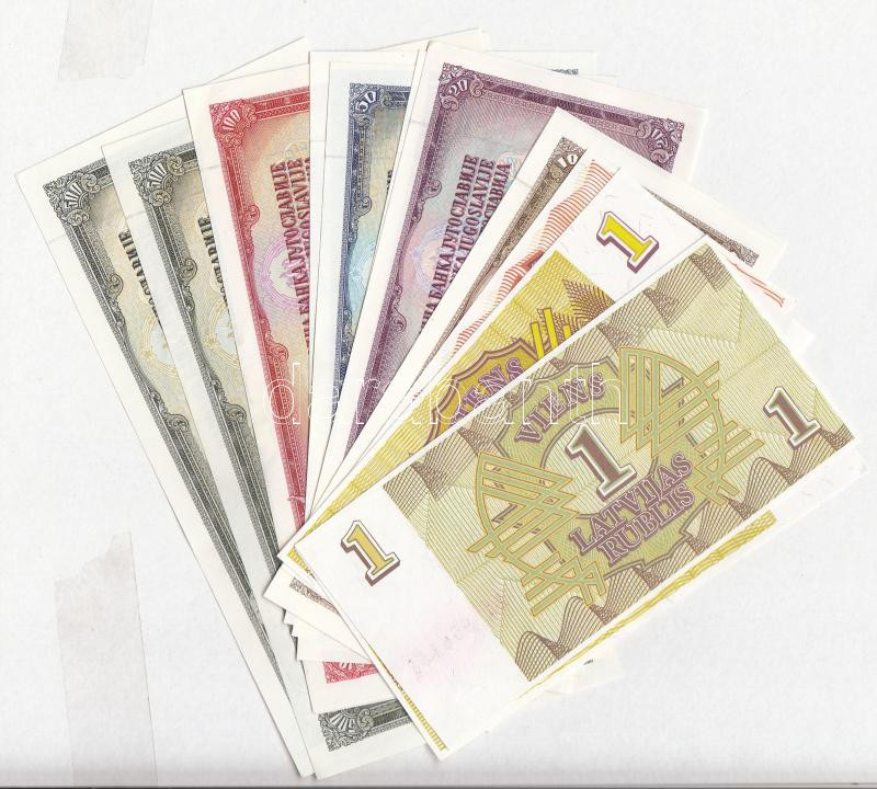 Jugoszlávia 1968-1978. 50D (2x) + 1978. 10D (2x) + 20D (2x) + 1978-1981. 500D (2x) + 1981. 100D (2x) + Lettország 1992. 1R (3x) + 2R T:I,I-