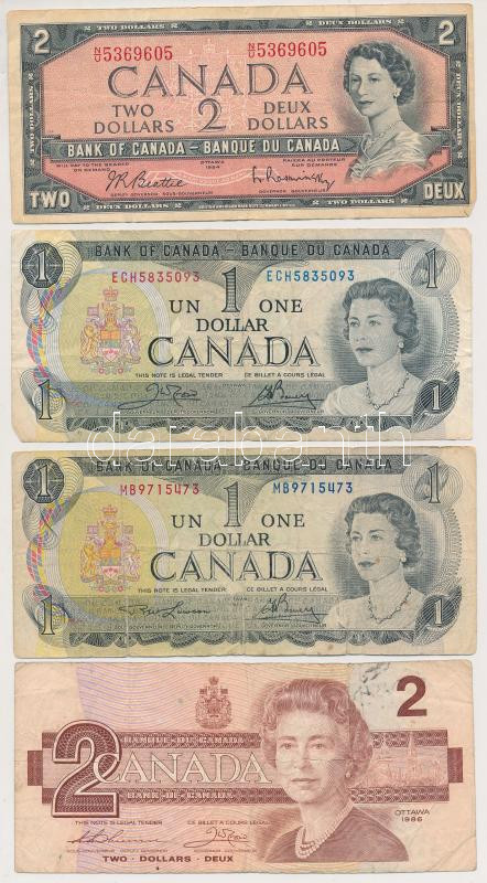 Kanada 1961-1972. (1954) 2$ átalakított haj. Szign.: Beattie-Rasminsky + 1973. 1$ (2x) + 1986. 2$ T:III,III-