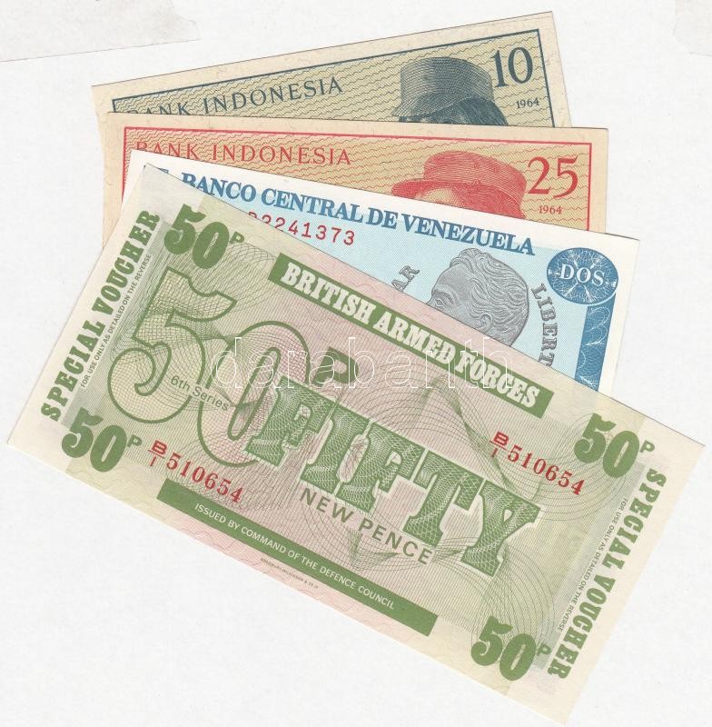 https://www.darabanth.com/en/253-Online-auction/253.0/Numismatics/Worldwide-banknotes~200011/Vegyes-Indonezia-1964-10S-plus-25S-plus-Nagy-Britannia-Katonai-kiadas-1972-50p-plus-Venezuela-1989-2B~II1229074