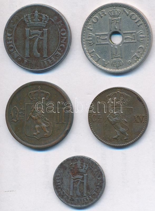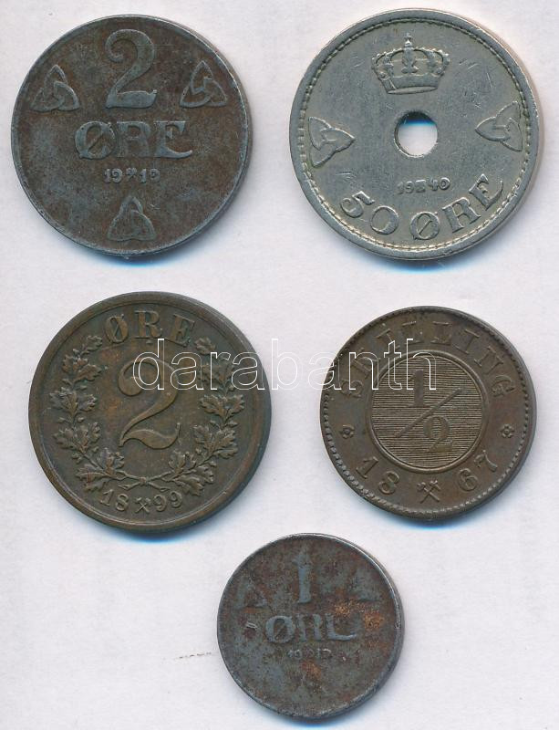 Norvégia 1867. 1/2s Cu + 1899. 2ö Br + 1919. 1ö Fe + 2ö Fe + 1940. 50ö Cu-Ni T:2,2-