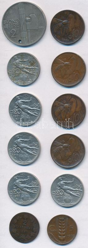 Description: Olaszország 1861M 2c Cu + 1913-1935. 5c Cu + 10c Cu (4xklf) + 20c Ni (5x) + 1926R 2L Ni T:2,2-,3 ly.