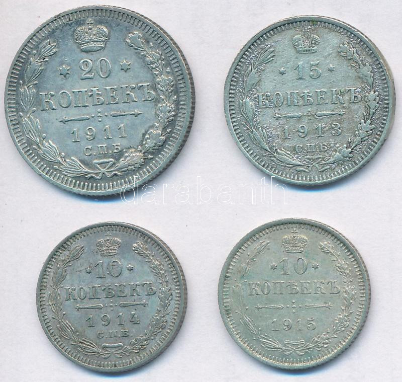 Orosz Birodalom 1911. 20k Ag + 1913. 15k Ag + 1914. 10k Ag + 1915. 10k... https://www.darabanth.com/en/253-Online-auction/253.0/Numismatics/Worldwide-coins~200012/Orosz-Birodalom-1911-20k-Ag-plus-1913-15k-Ag-plus-1914-10k-Ag-plus-1915-10k-Ag-T2-2-foglalatnyom-15k-pe~II1229575