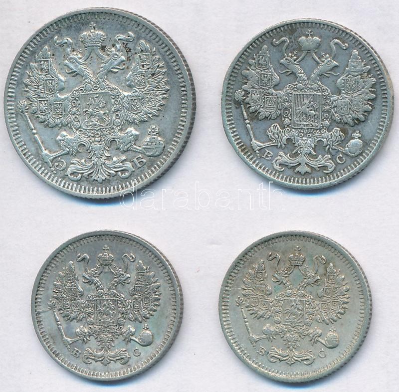 Russian Empire 1911. 20 Kopeks Ag + 1913. 15 Kopeks Ag + 1914. 10 Kopeks Ag + 1915. 10 Kopeks Ag C:XF,VF frame mark on 15 Kopeks