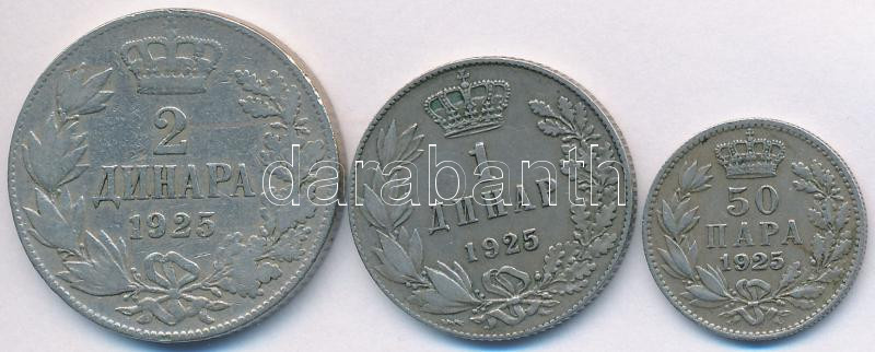 Kingdom of the Serbs, Croats and Slovenes 1925. 50 Para Ni-Br + 1 Dinar Ni-Br + 2 Dinara Ni-Br C:XF,VF