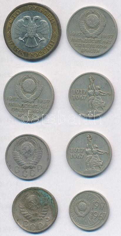 Szovjetunió 1945. 15k + 1957. 15k + 1967. 10k + 15k (2x) + 20k (2x) "Forradalom 50. évfordulójára" + Oroszország 1992. 100R T:2,2-