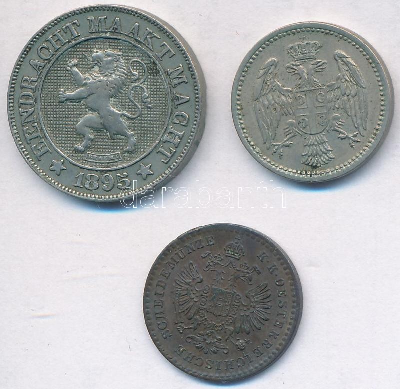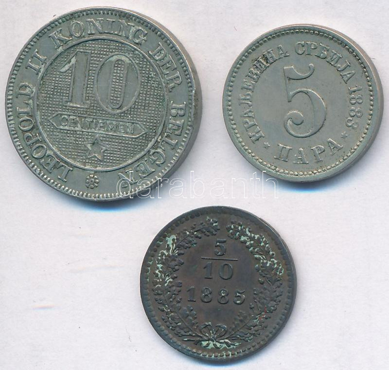 Description: Vegyes: Ausztria 1885. 5/10kr Cu + Belgium 1895. 10c Cu-Ni holland körirattal + Szerbia 1883. 5p Cu-Ni T:2
