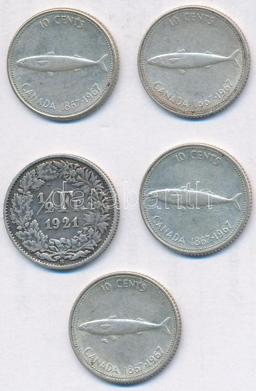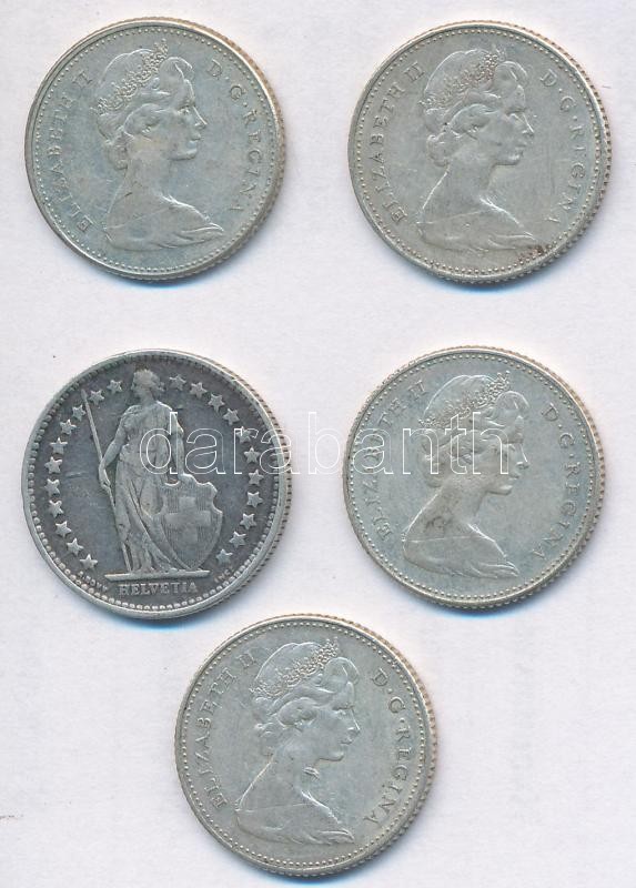 Vegyes: Kanada 1967. 10c Ag (4x) + Svájc 1921. 1/2Fr Ag T:2,2-