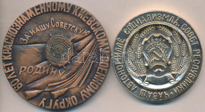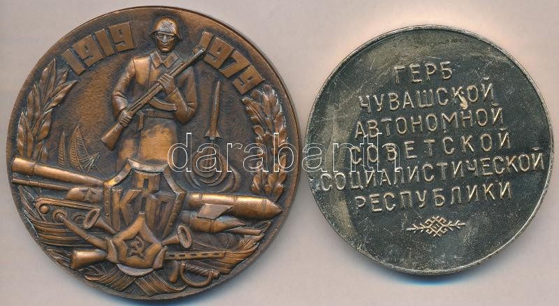 Szovjetunió. 1979 "A Kijevi Katonai Körzet 60. évfordulója / 1919-1979" fém emlékérem (70mm) + DN "Csuvas Autonóm Szovjet Szocialista Köztársaság" fém emlékérem (60mm) T:2
