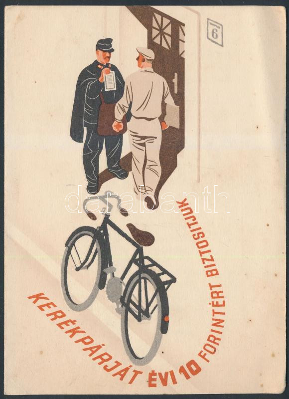cca 1960 Kerékpárbiztosítás reklámnyomtatvány