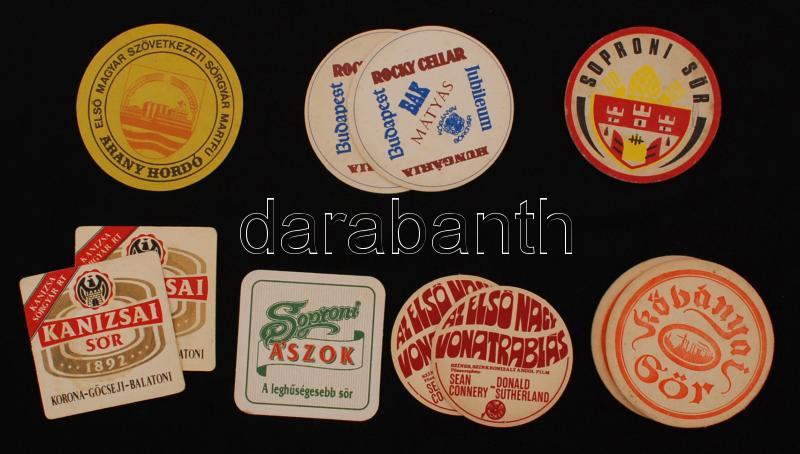 cca 1980 Különböző magyar söralátétek, vegyes méretben és minőségben, ...