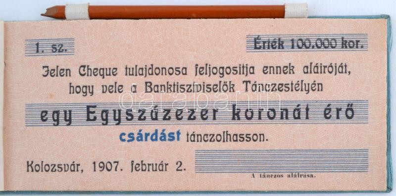 1907 Tánczrend a Banktisztviselők Tánczestélyre "cheque -füzet&qu...