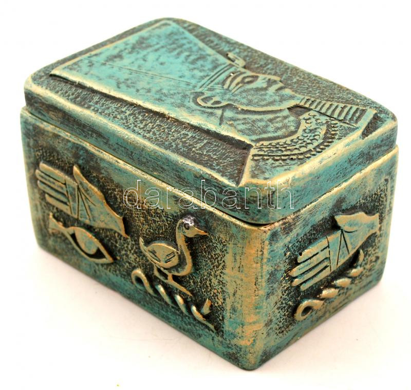 Egyiptomi emlék dobozka, festett kerámia, apró lepattanással, 11×7 cm