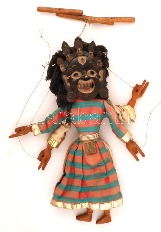 Description: XX. sz. közepe: Nepál(?), Ganésa istent és Mahakala istent ábrázoló nagyméretű marionett bábu, m: 45 cm / Marionette figure from Nepal(?), depicting Ganesha and Mahakala deities, h: 45 cm