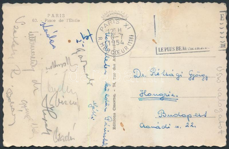 1954 A magyar úszó válogatott tagjai által hazaküldött lap Parisból (G...