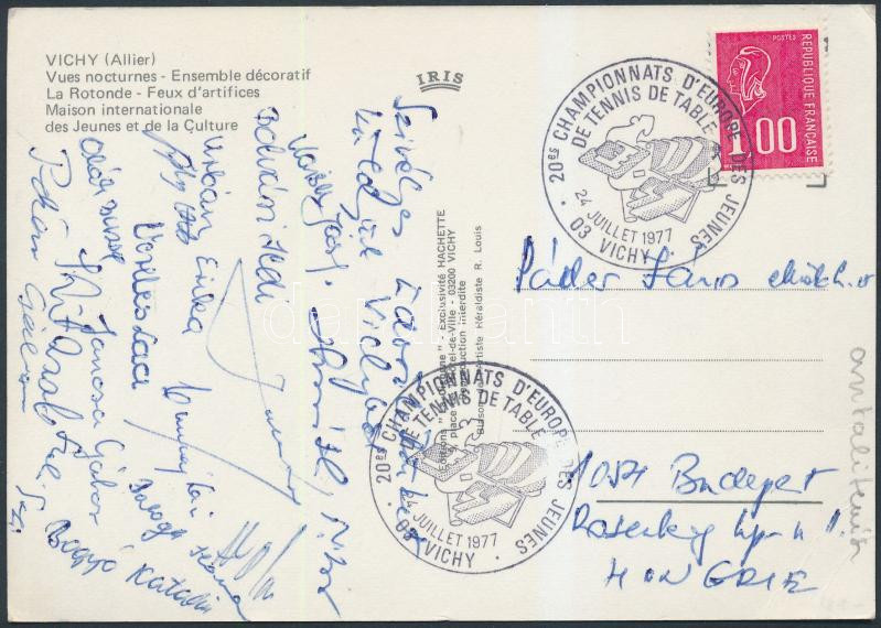 1977 A magyar asztalitenisz válogatott tagjai által hazaküldött lap az...