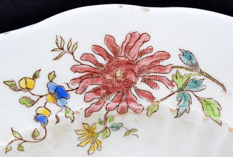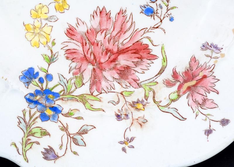 Óherendi mély tányér, kézzel festett, jelzett (korona szalaggal), apró...