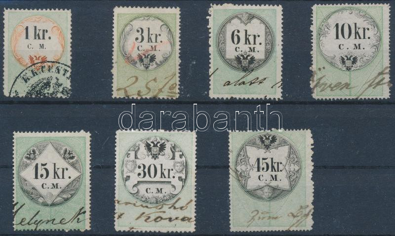 1854 7 klf C.M. okmánybélyeg: 1kr, 3kr-45kr
