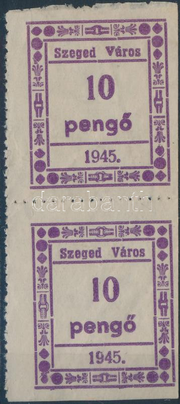 1945 Szeged városi illeték 10P pár, az egyik bélyegen zászló nélküli a...