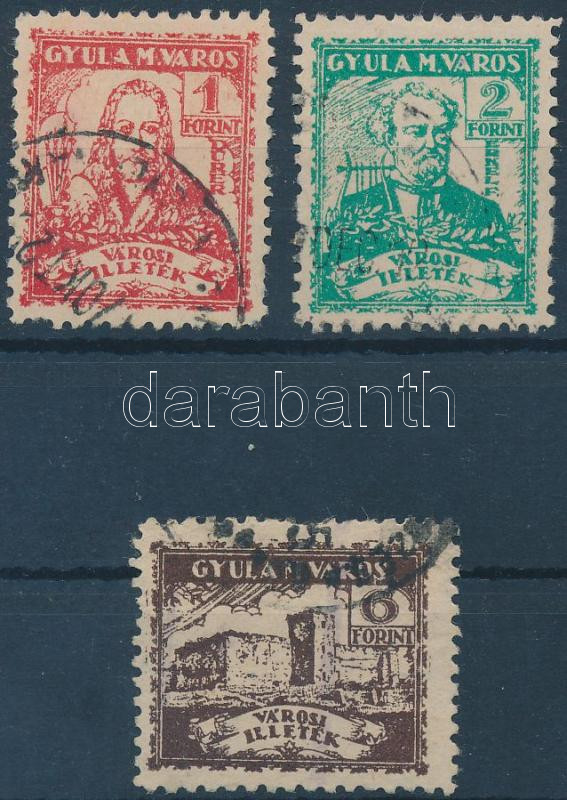 1947 Gyula M. város városi illeték 3 klf érték: 1Ft, 2Ft, 6Ft