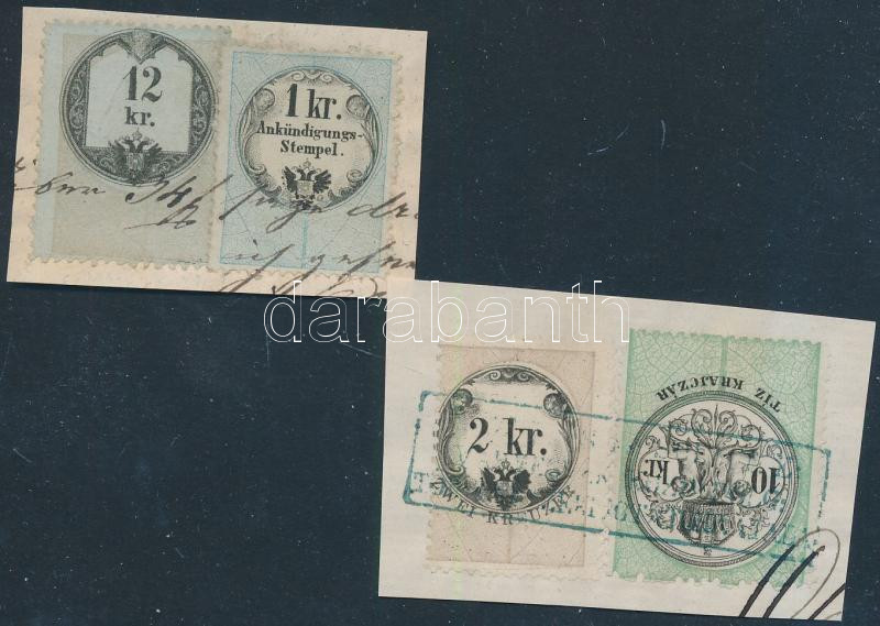 cca 1860-1880 2 okmánybélyeg összefüggés kivágásokon / document stamp sets