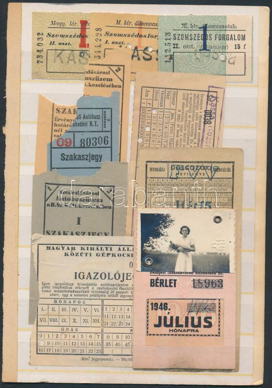 10 db különböző közlekedési jegy(Budapest Székesfővárosi Közlekedési Rt., Magyar Királyi Államvasutak Közúti Gépkocsi Üzem, stb.)