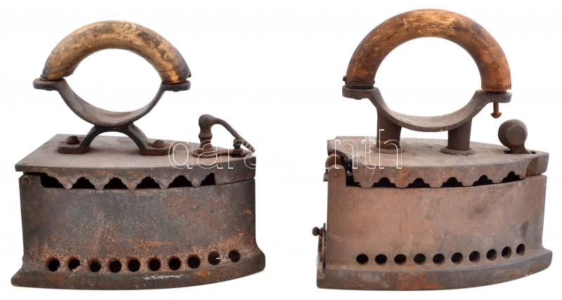 2 db régi szenes vasaló, rozsdás, egyik sérült, 20×23 cm
