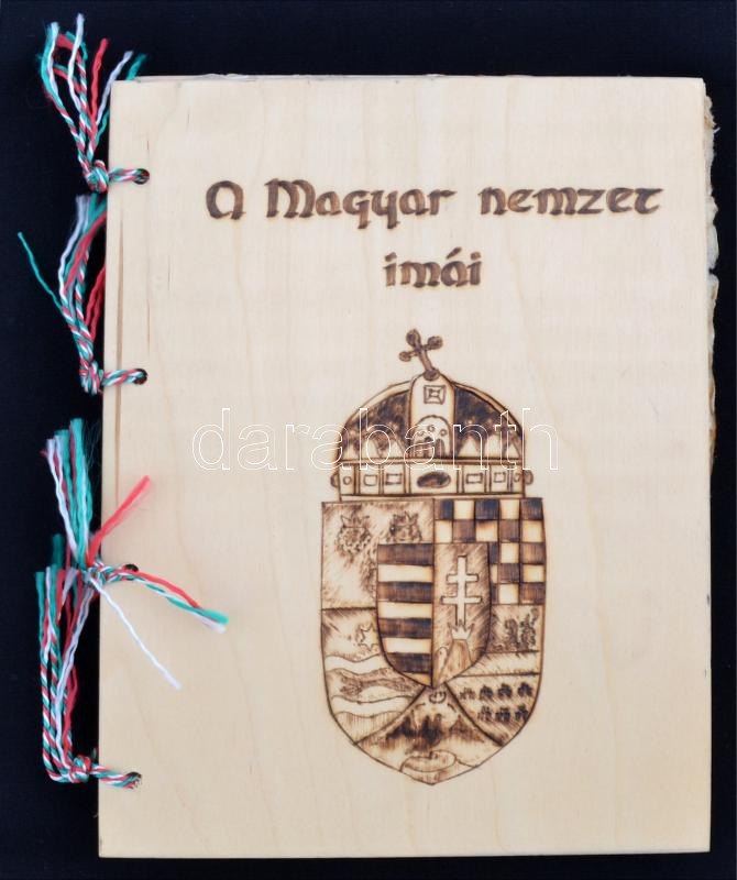 A magyar nemzet imái merített papíron, fa borításban, nemzeti szalagg...