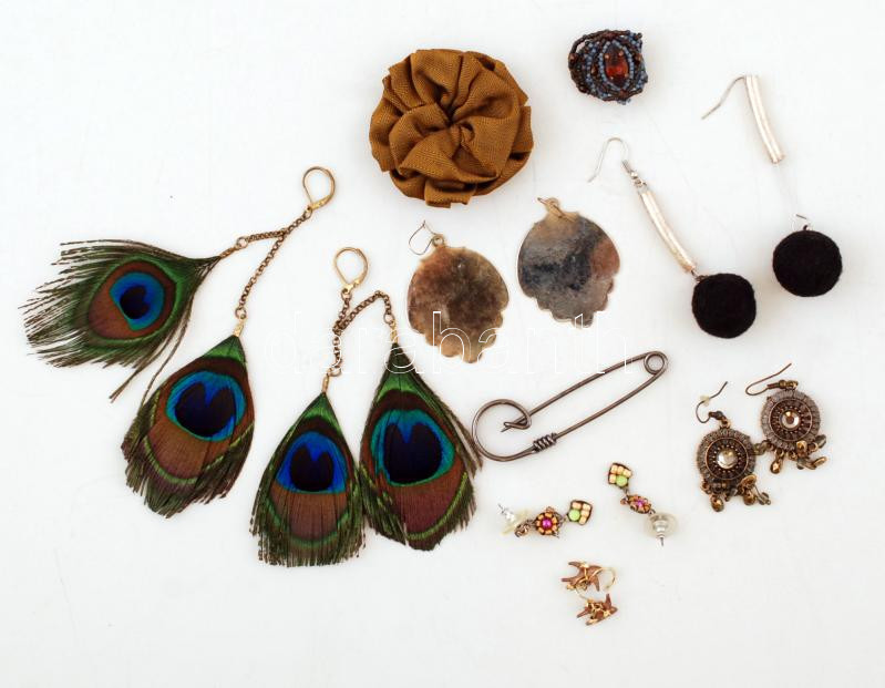 Kis bizsu tétel 6 pár mutatós fülbevaló, két kitűzővel és 1 db gyűrűvel