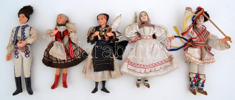 Régi népviseletes babák, 5db, cca 23cm