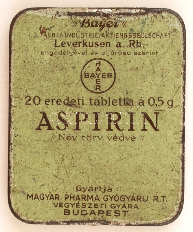 https://www.darabanth.com/en/253-Online-auction/253.0/Other-collectibles/Flea-Market~400021/cca-1930-Aspirin-Bayer-Magyar-Pharma-Gyogyaru-Rt-zomancozott-fem-gyogyszeres-dobozka-Met~II1225376