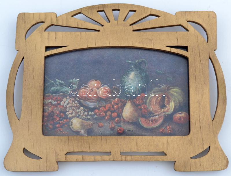 Szecessziós stilusú modern fa keret, nyomattal, belső: 9×14 cm, külső:...