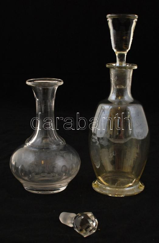 2 db dekoratív üveg kiöntő dugóval, jelzés nélkül, a dugók csorbákkal,...