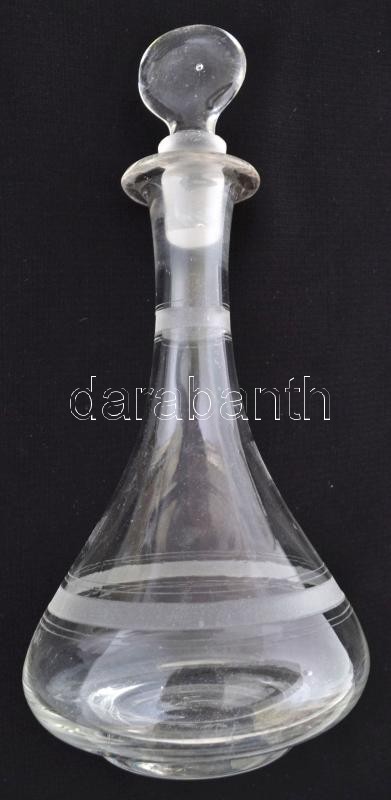 3 db üveg kiöntő, 2 db dugóval, az egyik dugón csorbával, egyébként hi...