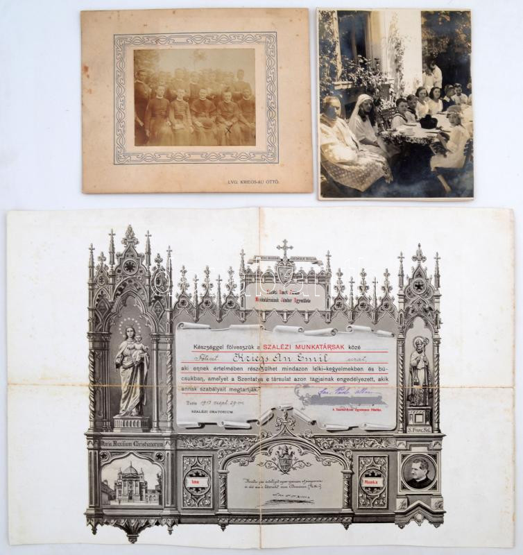 cca 1900-40 Kriegs-Au Ottó városmajori plébános hagyatékából, fotók, nyomtatványok, levél, stb, 10db