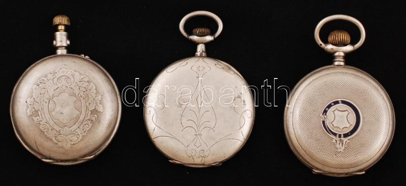 3 db ezüst (Ag.) zsebóra, jelzettek, nem működnek, hiányosak, bruttó 2...