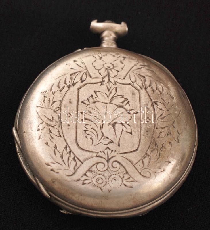 4 db díszes ezüst (Ag.) zsebóra tok, különböző méretben, összesen brut...