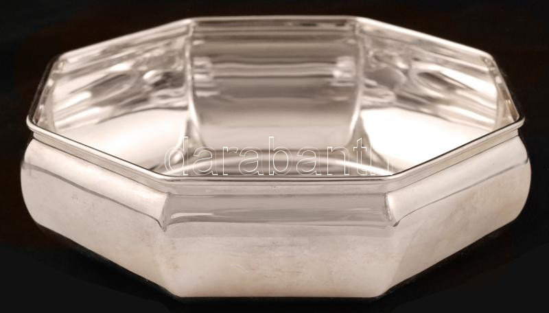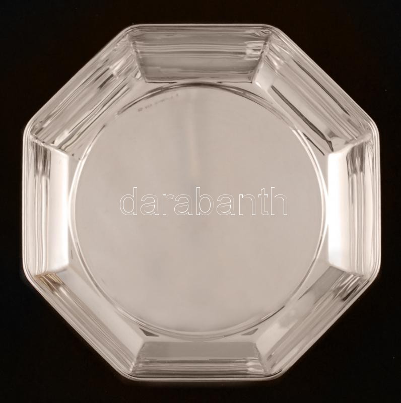 Ezüst (Ag.) tál, jelzett (Groggio), nettó:212 g, 15×15 cm