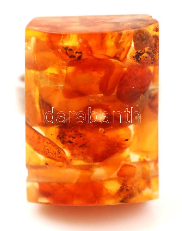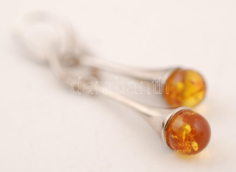 Ezüst(Ag) fülbevaló és gyűrű borostyán díszítéssel, ezüst(Ag) medál gy...