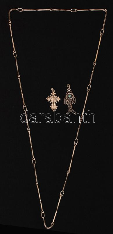 Ezüst(Ag) nyaklánc, 2 db ezüst(Ag) medállal, jelzéssel és jelzés nélkül, h: 80 cm, 12,8 g
