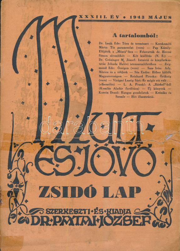 https://www.darabanth.com/en/253-Online-auction/253.0/Other-collectibles/Judaica~400040/1943-Mult-es-Jovo-Zsido-Lap-XXXIII-evfolyam-majus-juniusi-szamok-2-db-szakadasokkal~II1227993