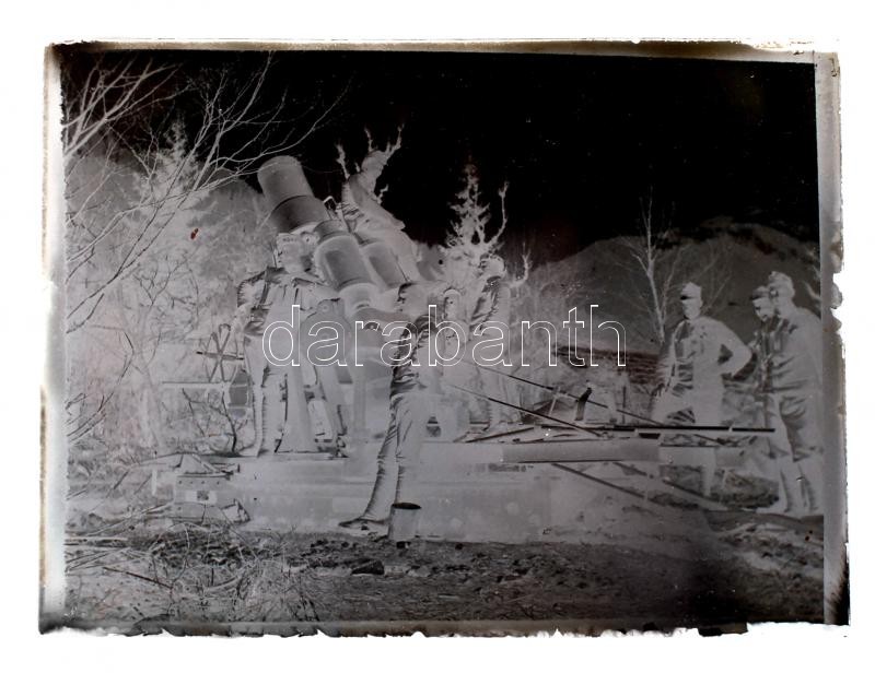 cca 1916 11 db mozgalmas világháborús üvegnegatív, rajta ágyúk, lövész...